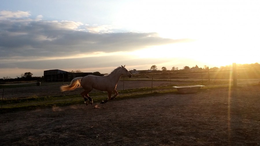 Ta quatrième photo est sympa avec le galop sous le couché de soleil!