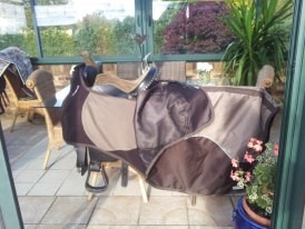 Quand à Reining, ta selle est peut être trop grande... Moi avec une 16" ca passait.