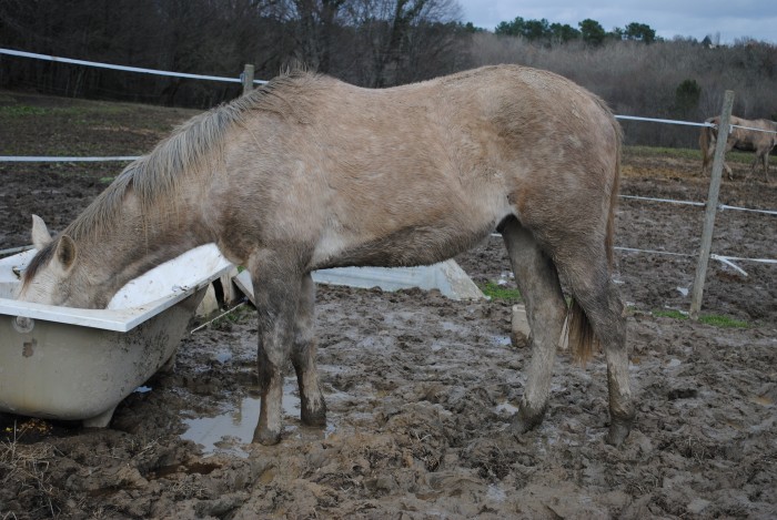 Nous malgrés toute l'eau, on a de la chance que certaine partie de paddock ou pré ne soit ni inondé ni boueuse mais bon, il ne faut pas rever non plus, a certain endroit, les chevaux on de la boue jusqu'a mi-canon, voir presque jusqu'au genou parfois.