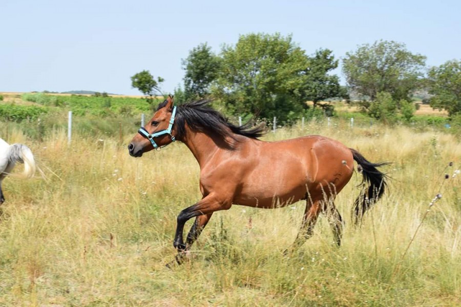 Je sais qu'il vient d'Espagne et je pensais pouvoir retrouver des choses sur ses origines grâce à sa marque, mais apparemment ce serait tout simplement la marque typique des cruzados... Il serait hispano arabe, on m'a aussi dit hispano anglo arabe (mais bon niveau taille c'était un mini pouce). Si quelqu'un en sait plus à ce sujet cela m'intéresse.