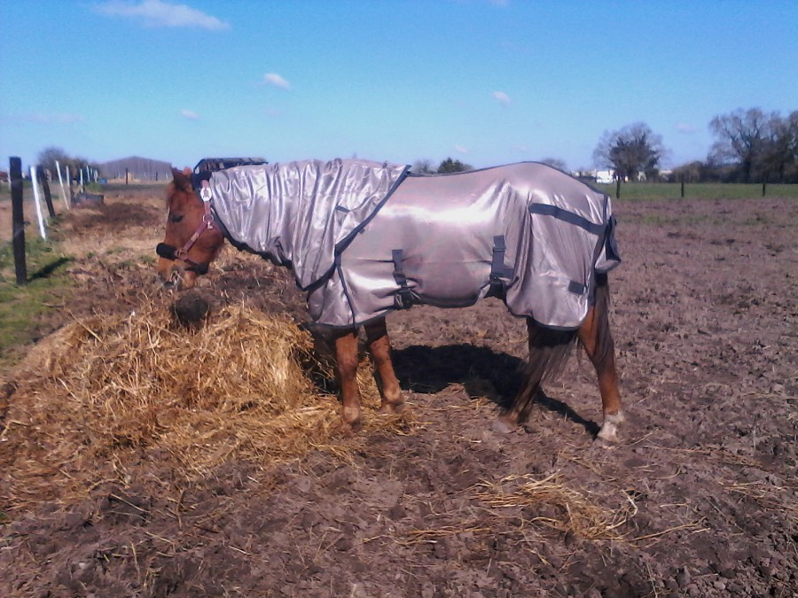 Je pensais appliquer un peu de produit qui préviens la dermite et d'anti-mouche en même temps que la couverture au cas où...
