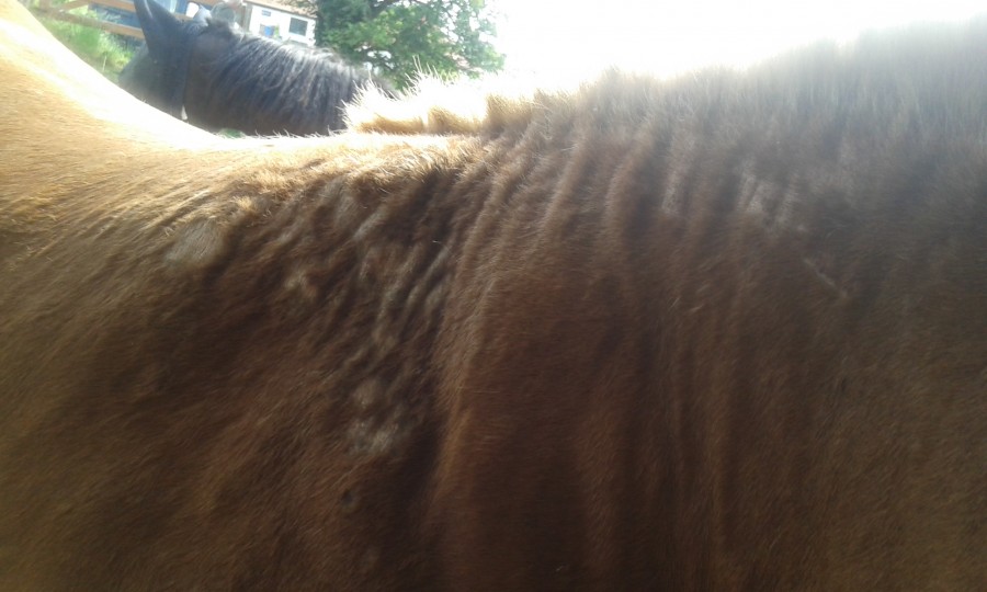 Cette année les insectes sont fous chez moi, il se fait encore beaucoup piquer... Et il a commencé à se gratter beaucoup la crinière (ça désquame légèrement à la base), un peu le haut de la queue, et le poitrail. Aucune plaie, un peu moins de poils.