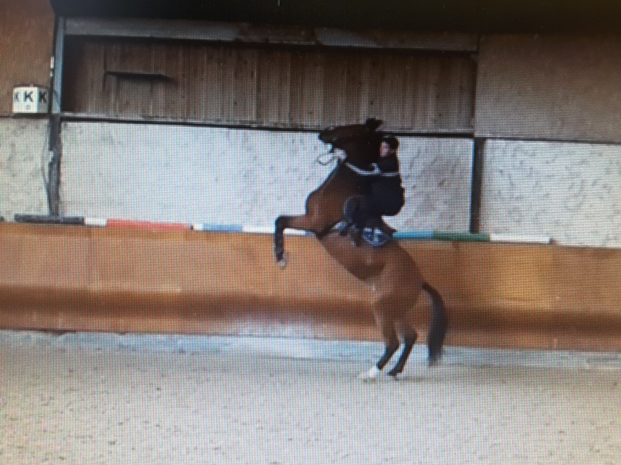Comme on arrive toujours pas à partir en ballade au départ de l'écurie (madame joue sa rebelle :demi tour, je me pointe, je ne veux pas quitter Maman....) le coach est déjà venu deux fois pour la monter et la faire décoller de sa chère écurie.