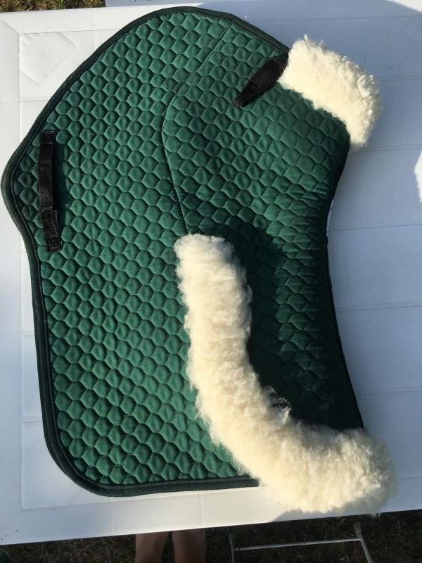 Je vends mon tapis Griffin Nuumed Close Contact (marque anglaise équivalente de Lemieux) vert forêt avec doublure mouton naturel de très bonne qualité. Taille L (selle 17/17,5 pouces). Porté 5 fois donc état neuf et lavé pour la vente. Le mouton permet une très bonne absorption de la sueur et un contact très doux avec la peau. Parfait pour chevaux à peau sensible. La doublure est assez fine donc n'équivaut pas à un amortisseur non plus.