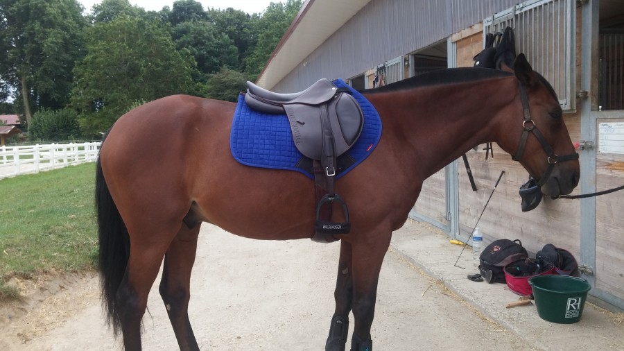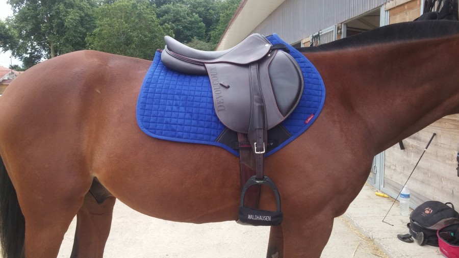 Mais j'ai peur que l'avant du tapis ne déborde de trop car j'ai une selle mixte (thorowgood haut garrot), est-ce qu'il existe des tapis mixte avec ce genre d'attache (au niveau des anneaux de la selle et non aux contre sanglons) ? ou est-ce que quelqu'un a une selle mixte avec ce tapis CSO ? ça choque pas trop ?