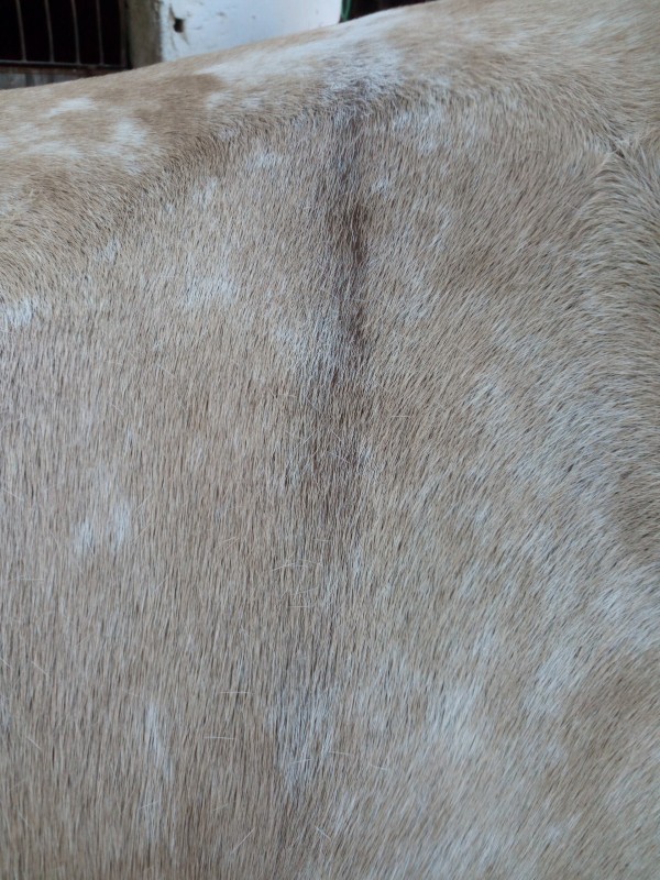 . Amor a tout le temps le poil comme ça après avoir monté. C'est juste des poils morts qui s'arrachent avec les frottements liés aux mouvements de la selle. Je ne trouve pas ça si particulier.