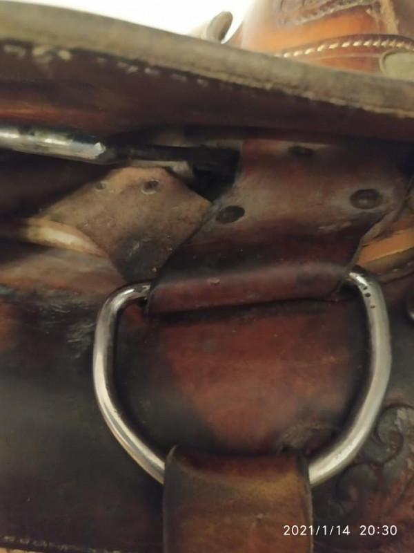 Sur une selle western le cuir est souvent travaillé : le côté de grain (dessus) peut être timbré et/ou sculpté (le côté du dessous s'appelle la chair). Il vous faut donc bien regardé les motifs mais aussi la qualité de la bouclerie : Les motifs ont-ils été fait à la presse industrielle ou ont-ils été marqués ou gravés ? Quel est le métal utilisé pour la fabrication des boucleries et autres décorations ?