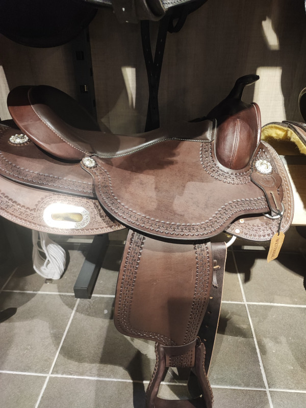 Conseils (Opentao) : "je conseillerais aux cavaliers de loisir une selle de type reining (super confort et trés belles), aux barelleurs purs une vraie selle de barrel, aux cutteurs une vraie selle de cutting, à ceux qui font du trail et pleasure de haut niveau (au moins championnat de France) une selle de pleasure (s’ils en trouvent) ou une selle de reining bien décorée (ca fait super bien l’affaire)."