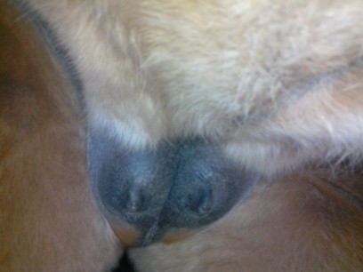 Pis deja bien devellopé, muscle de la croupe complétement relaché, elle ne mange presque plus de foin et passe son temps à l'écart de l'autre jument, dans son coin, en grignottant de l'herbe. ça m'étonnerais qu'elle tienne jusqu'a son terme qui est normalement autour du 16 mars.