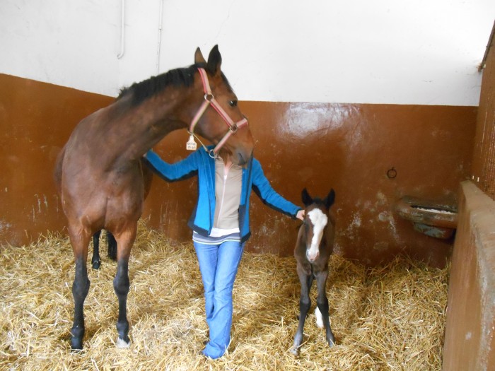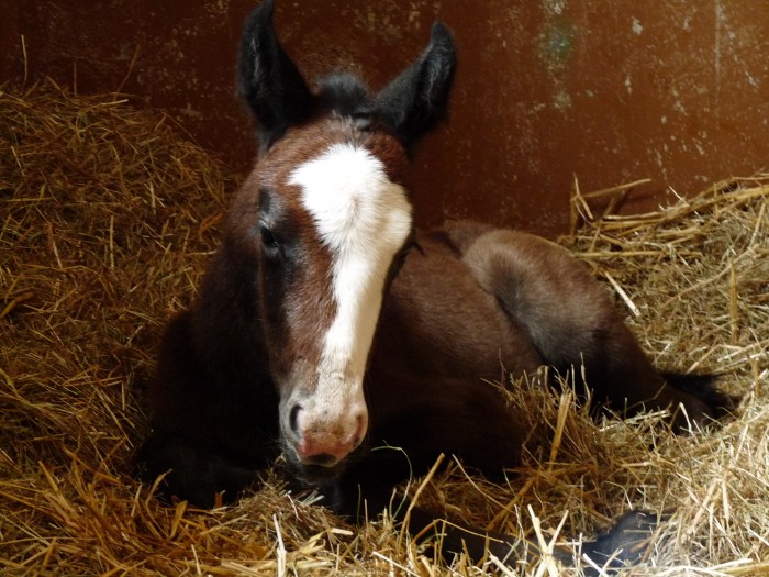 La naissance s'est faite au haras des Bréviaires et tout s'est très bien passée même si la miss a mis 2 heures à se lever!!