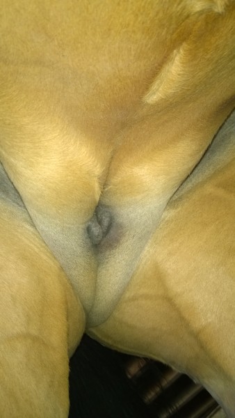 C'est vraiment entre les mamelles, ce midi, je l'ai douché et nettoyé à la compresse la zone, je pense qu'avec les saletés et le frottement des mamelles quand elles gonfles et dégonfles ont provoquées une irritation entre les mamelles. En tout cas la zone est non douloureuse, elle a apprécié.