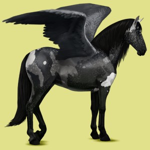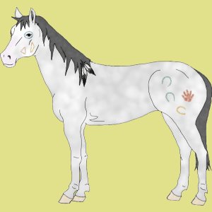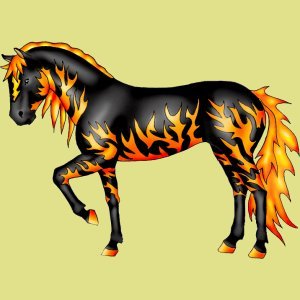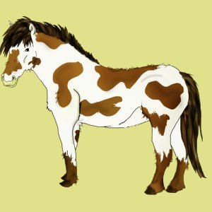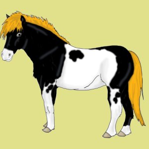 Le poney pie, avec sa crinière jaune : on dirait le poney de Yakari le petit indien ! Et l'autre enflammé... heu... beau mais bizarre.