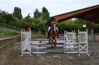 Alors c'est un cheval vite inquiet, avec du jus, j'ai vu qu'il était hésitant, mais je te rassure c'est pas mécanique, c'est dans sa tête, vu qu'il ressent moins le sol avec les gloves donc il hésite un peu, peut être juste une question d'habitude, de toute manière il me faut réessayer en balade en extérieur