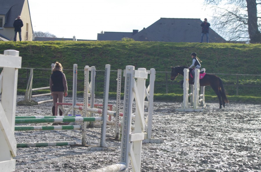 Sinon pour ma part, j'ai sauté samedi et dimanche. Samedi juste un obstacle isolé tranquillou, pas bien haut, 1m max. Juste pour travailler l'abord dans le calme et la réception dans le calme également.