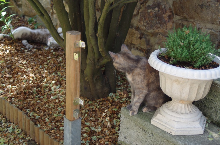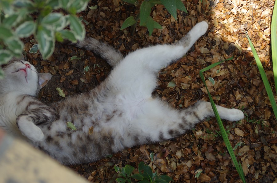 Je me demande comment ils font pour se coucher sur le ciment bouillant en pleine journée , là encore ils sont à l'ombre , mais parfois en plein soleil, sont fous ces chats.