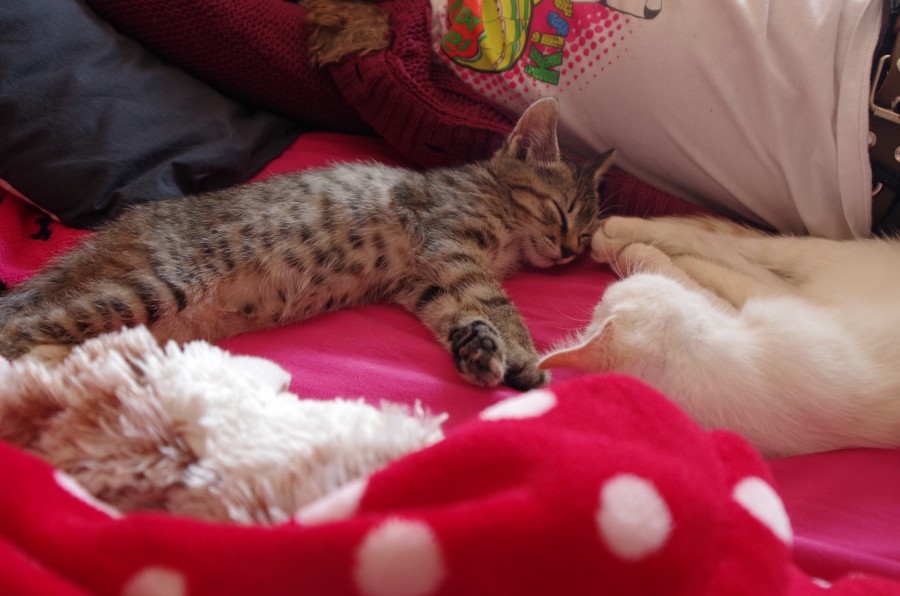 Bahia (tigré) et doushka (noire et blanche)
