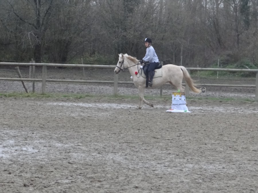 Saphir s'est tellement prit au jeu qu'il a fait le barrel racing au galop mdrrr. Il a été super calme, juste il était à fond dedans, on prenait large autour des bidons, mais il a été top du top !