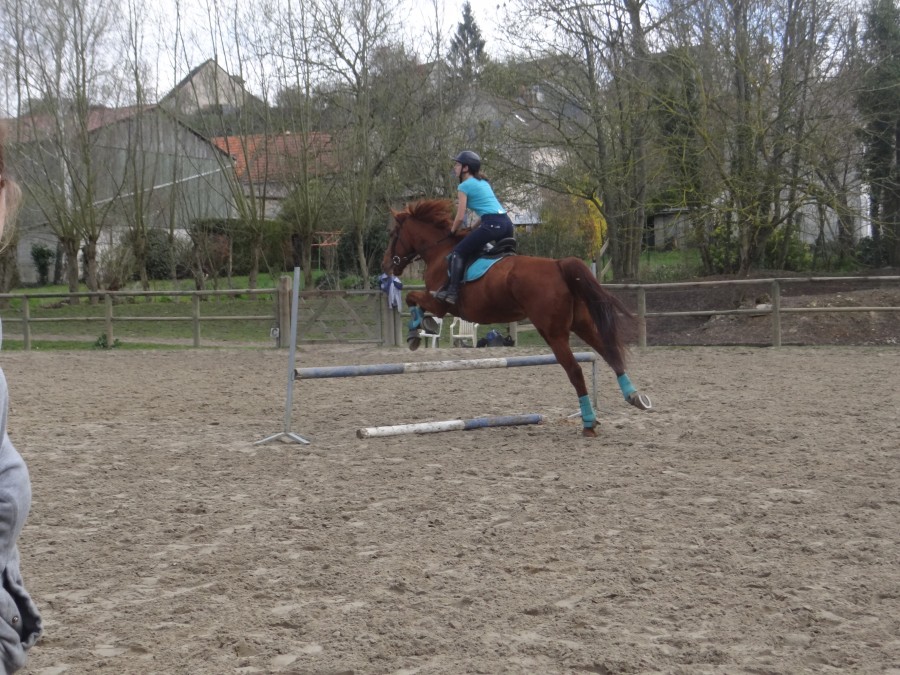 élo, je vois pas d'évolution avec les anciennes photos, pourtant il n'y a pas haut à sauter, j'ai envie de dire la même chose, tu es trop en arrière, garde tes coudes près du corps, accompagne ton cheval qui a te mettre plus en équilibre et aie la bouche du doudou et je continue à avoir l'impression que tu flippes