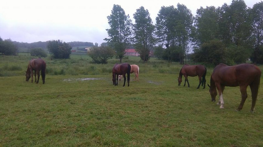 Vendredi soir : Passage au pré voir mon Ponours Loukoum. Je l'ai trouvé avec les autres dans le pré d'été et le moins que l'on puisse dire, c'est qu'ils ne manquent pas d'herbe et ne se marchent pas dessus. Il est parfaitement intégré à présent et la gérante m'a dit qu'il était vraiment gentil. Elle pense qu'il sera dominant mais pas agressif car, d'après elle et ce qu'elle en a vu, elle m'a dit qu'il n'en a pas besoin pour s'imposer, l'intimidation suffit amplement et il n'en abuse pas. Bref, je suis très ravie de ce côté là car ça m'inquiétait beaucoup ^^
