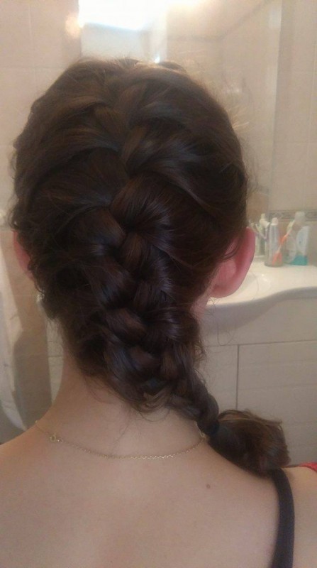 Pour la coiffure j'avais fait une tresse qui partait sur le côté. Avec une rose blanche.