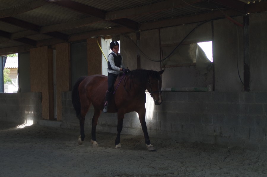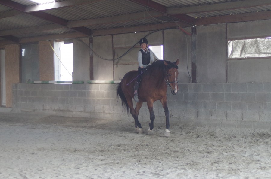 Ce matin cours en reprise avec Anton, nous progressons vraiment tout les deux, nous avons refait le travail au galop entre couloir de barres, aujourd'hui nous avons bien réussi l'exercice que ce soit au galop à droite et à gauche, poser les mains et se tenir droite aide peut-être un peu