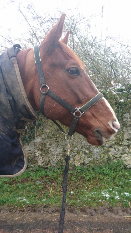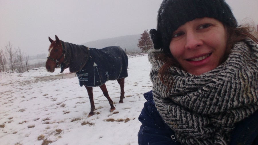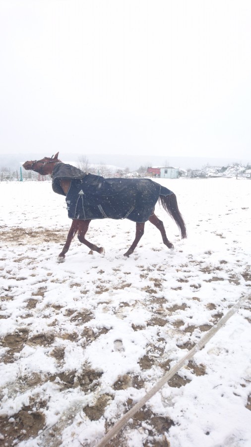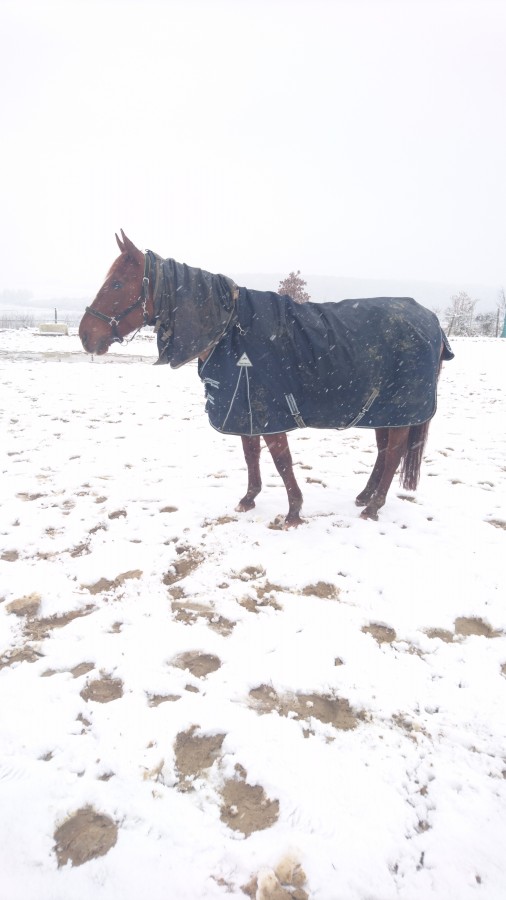 j'ai dû rentrer Saphir au box hier à cause de la neige. il est ferré des 4 pieds et c'est vraiment trop dangereux. lui qui vit au pré intégral depuis plus d'un an, ça doit lui faire tout drôle. et j'ai pas pu y aller aujourd'hui, je voulais au moins le faire marcher un peu... demain c'est foutu aussi je crois. je suis trop deg.