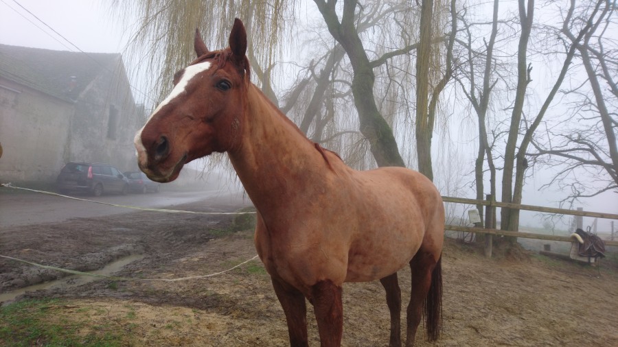 Il y a une dame qui retape une maison dans le hameau qui a une jument mais elle ne monte plus, suite à une très grosse chute.