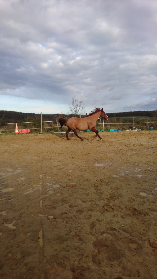 Je connais pas bcp de cavaliers donc je sors seule, parfois mais assez rarement, la femme du collègue ou est le ptit gris, vient avec moi sur sa Juju.