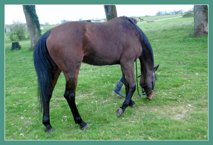 Comme je te disais de mon côté, tout roule, je profite toujours du p'tit gris ( deanqo) qui vit une belle vie dans son nouveau pré avec son pote, enfin quand il ne fait pas le foufou et se blesse