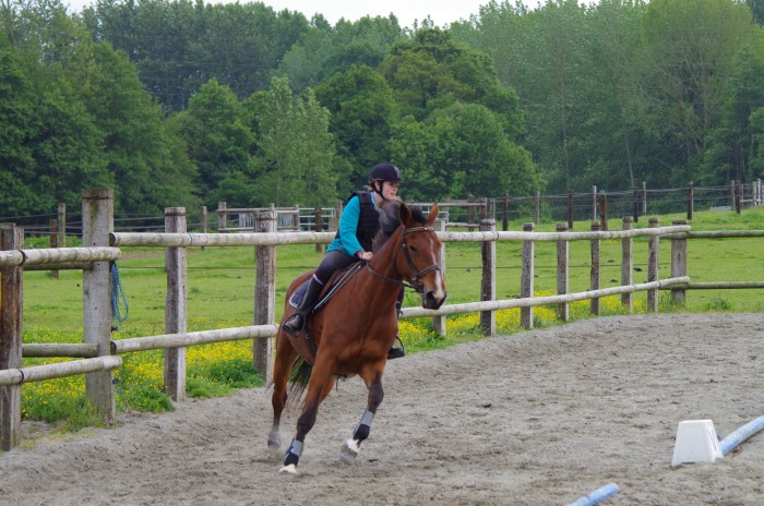 Du coup, moi qui voulais travailler les transitions galop-trot-galop, j'écourte la séance afin de lui laisser un souvenir agréable (galoper à gauche c'est cool oui oui