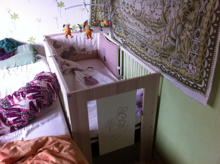 Pour le moment on a mis le lit a côté de mon lit, mais dès que ma fille aura 2 ou 3 mois (ou avant j'en sais rien) on mettra la lit dans sa chambre.