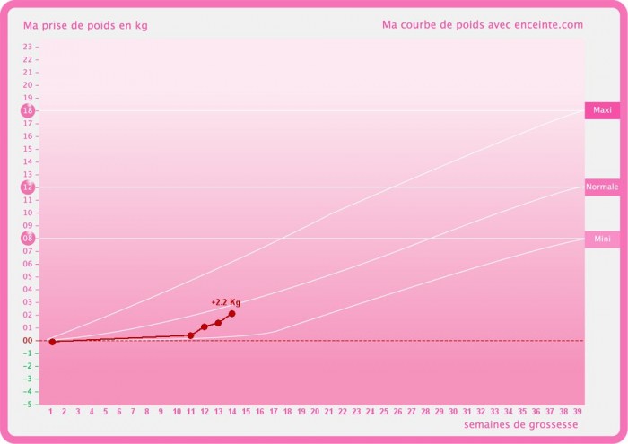 Perso j'avais un IMC inférieur à la normale donc j'avais "droit" à une prise de poids jusqu'à 18kg maxi.