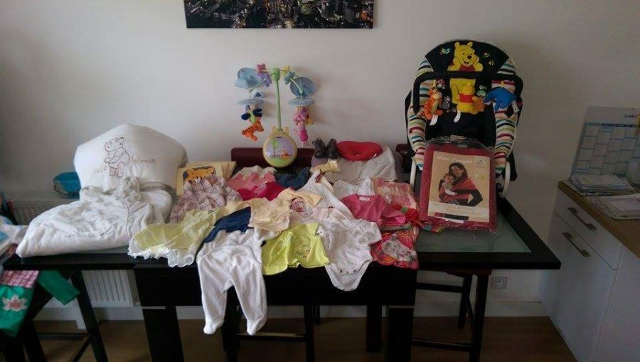 On a trouvé des petits cadres pour la déco, un transat, un mobile, un tour de lit comme je voulais, un matelas pour la table à langer, une écharpe de portage et pas mal de fringues ^^
