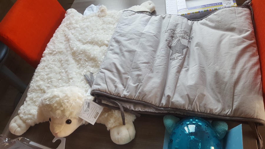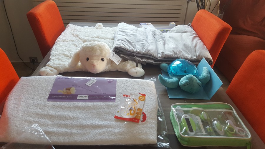 On vient de récupérer le lit + 6 gigoteuses (ma copine avait des jumeaux ^^) + draps, alaises, matelas, babyphone, tapis d'éveil et berceuse lumineuse.