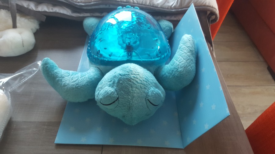 Elle est trop mignonne la tortue, elle fait veilleuse (elle projette des images des fonds marins type corail) et un peu de musique (bruit des vagues, ...). C'est très doux.