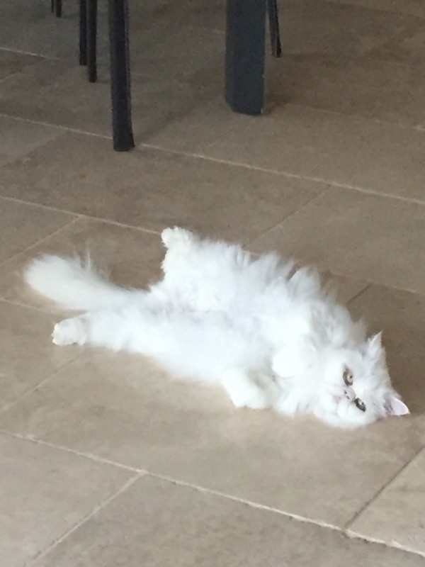 Meme quand tu es au petit coin...tu es bien entouré...on sait jamais si je tombe dans l'trou mon gros matou blanc ! Et pour mieux l apercevoir quand il a chaud....