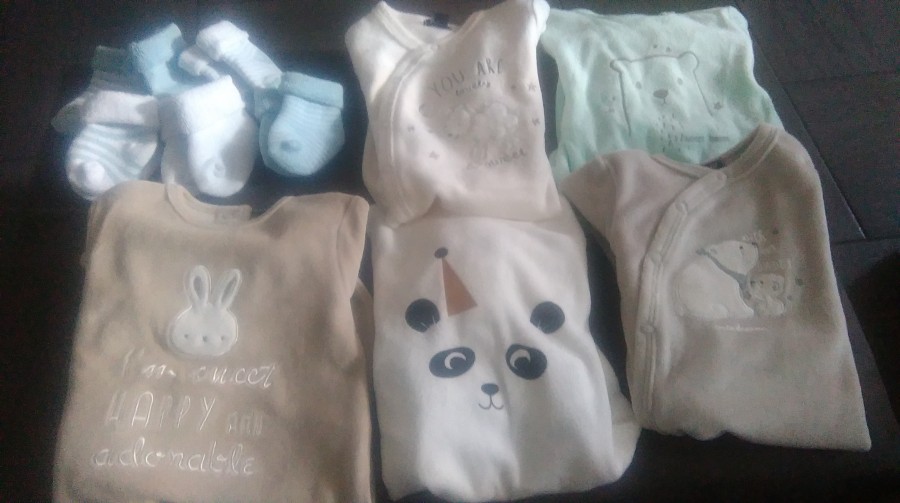 en faisant ma valise, je me rend compte que j'ai peu d'habit en naissance. et un mois, j'ai peu de body.. donc j'ai repris ...
