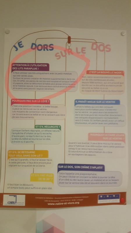 rockyjolie Les matelas de lit parapluie sont toujours très fins et durs pour limiter les risques. Les parois des lits parapluies étant souple, avec un matelas classique, le bébé peut s'étouffer entre la paroi du lit et le matelas. C'est pour cela qu'il ne faut jamais ajouter de matelas supplémentaire à celui qui est vendu avec, c'est une des recommandations pour lutter contre la MSN.