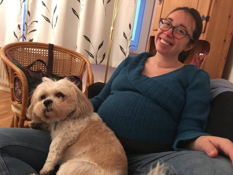 Petite photo de cet aprèm avec le chien de ma meilleure amie et mon bidon tout rond aha (excusez la tête fatiguée, j'avoue je pourrais dormir H24 en ce moment lol)