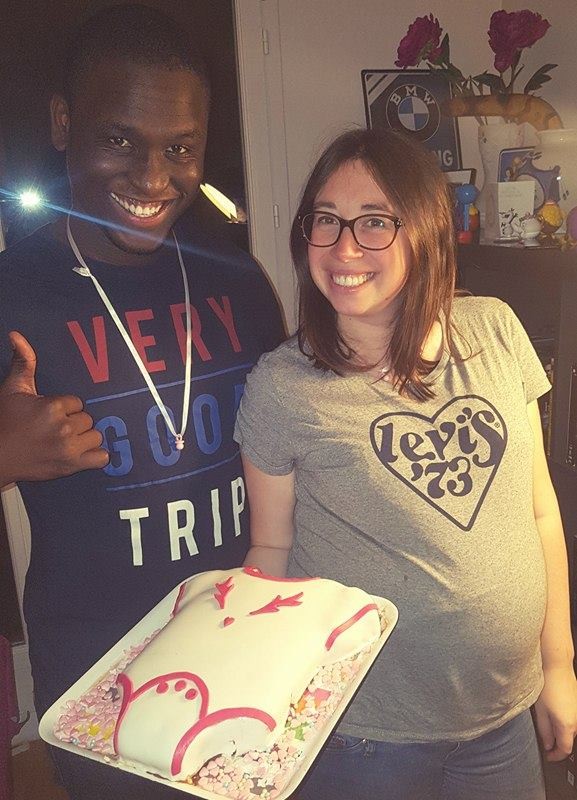 M'enfin ils ont quand même réussi à mettre une touche "babyshower" à l'américaine aha, y'avait des ballons et gobelets rose, j'ai eu droit à un gâteau de couches et un gâteau en forme de body (il était bon) et pleins de cadeaux. Je porte le premier bébé du "groupe", donc ça m'a fait super plaisir.