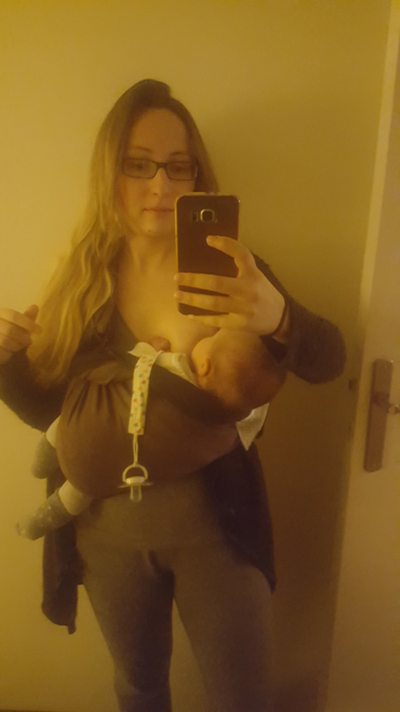 J'installais Lucie comme ça dans le sling. Mais effectivement avec le bout de sein c'est moins pratique je pense !