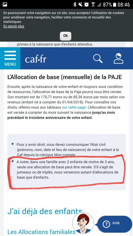 lasnia normalement on a droit à 120? en plus c'est pas la même aide. Il faut que je retrouve le papier. Par contre la paje est doublé pour la nounou.