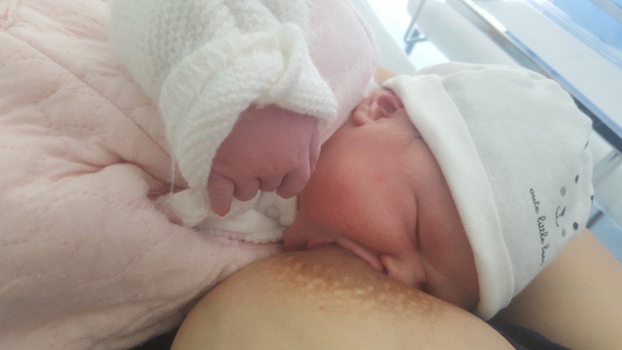 Jai pu accoucher sur le côté, faire du peau à peau immédiatement, la laisser aller chercher le sein (qu'elle a trouvé seule et elle tète comme une chef!!).