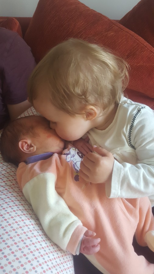Lucie adore sa petite soeur. Elle veut toujours la prendre sur elle, s'inquiète quand elle pleure, lui fait énormément de caresses et bisous. Ya des moments où c'est plus compliqué bien sûr. Mais dans l'ensemble ça se passe vraiment super bien. Elles tetent ensemble ou chacune leur tour et Lucie l'accepte très bien.