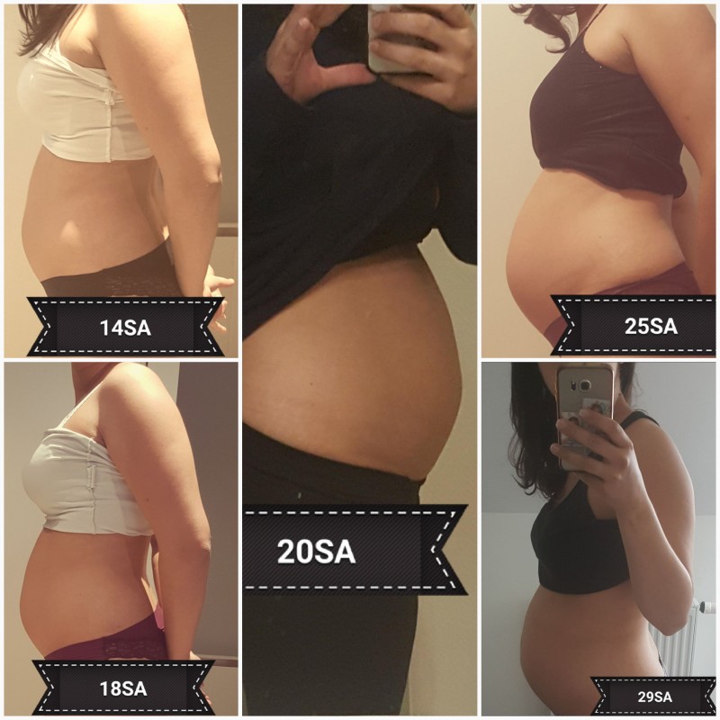Et non j'ai pas inversé 25SA et 29SA mais l'angle de vue (une par Monsieur et l'autre par moi) et l'heure de prise (matin pour 29SA et soir pour 25SA) aident pas. De plus avec la MAP bébé est descendu, je le porte donc un peu moins haut