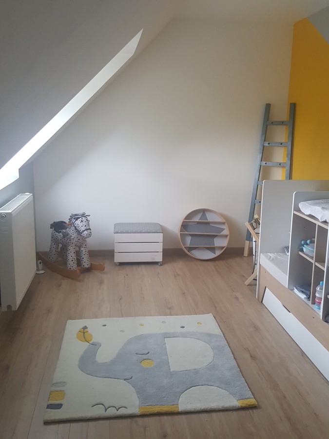 La premiere chambre quon a faite cest celle du futur bébé du coup.