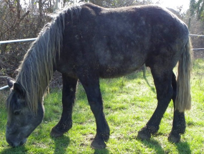 fin du printemps dernier, tout juste 5 ans : pommelé, marbré, alezan fumé... bref : vive le sooty !