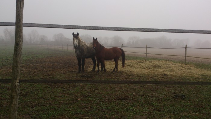 8 mois, 1er hiver qui commence, on est alezan brûlé aux crins tout blanc de blanc (cf les alezans classiques derrière)