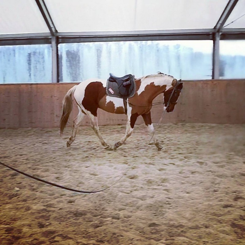 La semaine dernière Diablesse n'était pas au top (crispée, crottins un peu mou) du coup je n'ai fait que la travailler à pied ou en longe. Puis mardi j'ai repris une séance montée sur le plat. Je m'y attendais pas, mais elle a été parfaite sur tout ce que je lui ai demandé: à l'écoute, en avant, légère et fluide. Bref, super séance de révision !
