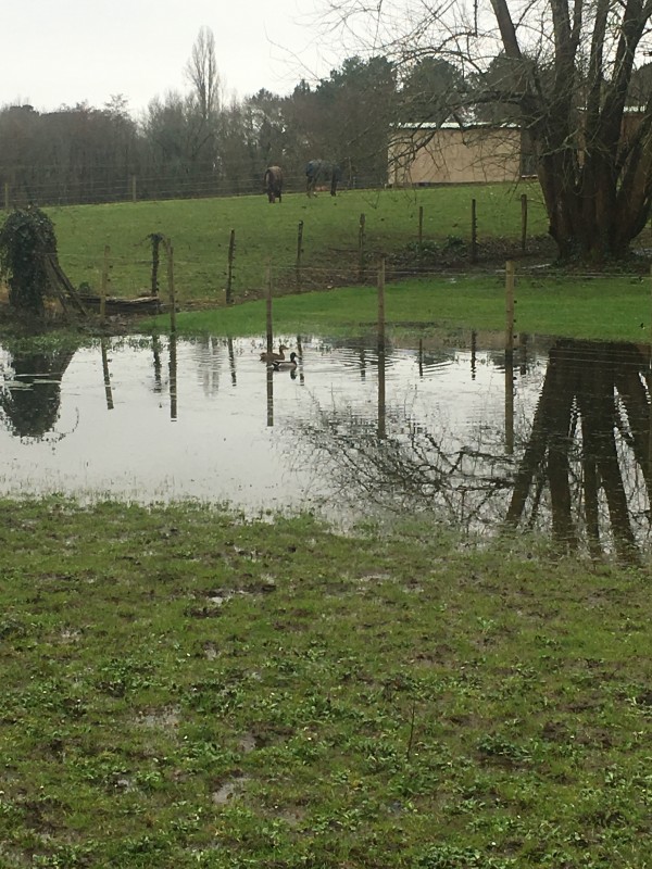 Passer dans la partie boueuse de son pré ça lui casse vraiment les pieds. Du coup il s'arrête, et il se plante comme ça
